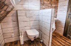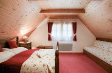 Drevenica má dve poschodia. Na prízemí je útulná manželská spálňa so samostatnou kúpeľnou. Za kuchyňou sa nachádza ešte jedna samostatná toaleta. Na poschodí sú 3 samostatné izby (3,3,1), kúpeľňa so sprchovým kútom a toaleta.